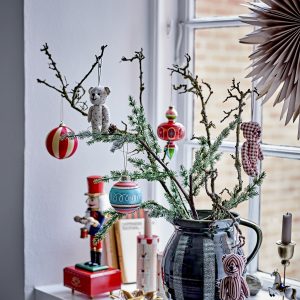 El adorno Kota de Bloomingville está elaborado en vidrio y pintado a mano en tonos azules, rojos y dorados.