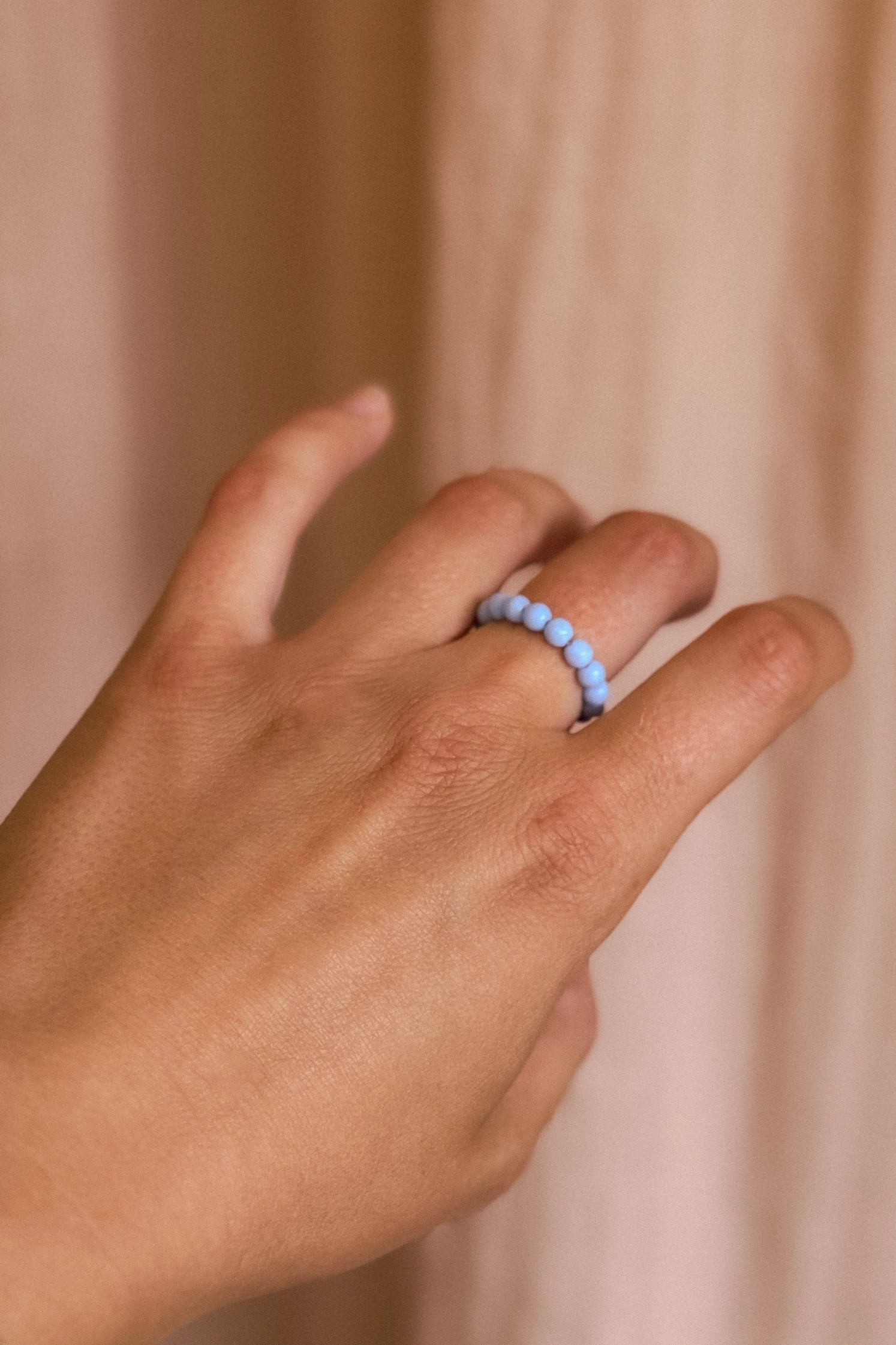 El anillo Sugar, con delicadas cuentas que recuerdan a granos de azúcar, se adapta cómodamente al dedo gracias a su hilo de nailon resistente y flexible. Es elástico y se adapta bien para tu comodidad.