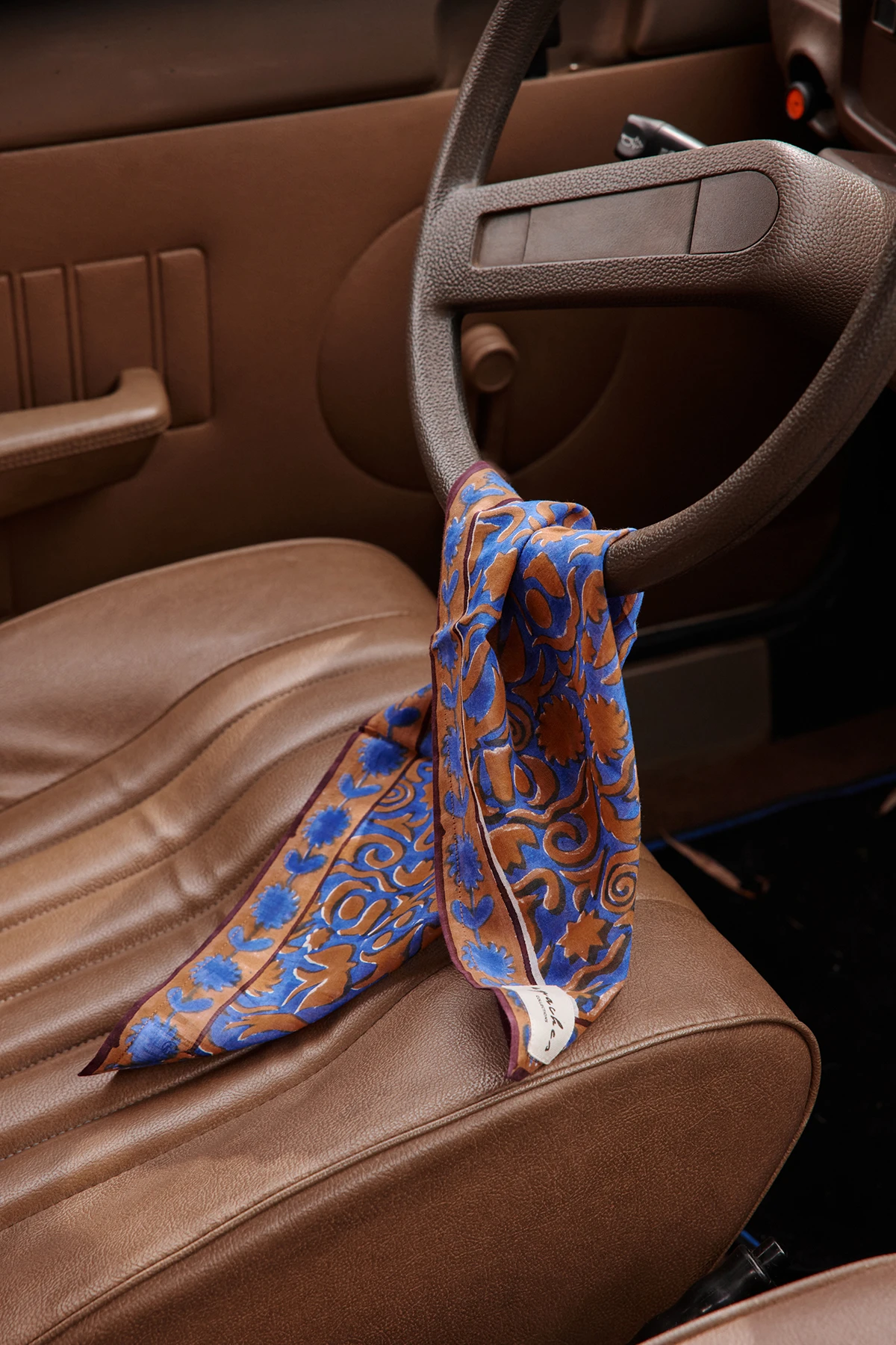 Moderno y con un diseño gráfico, el pañuelo DUPITTA Wesun True Blue ilumina tu look con sus intensos tonos y su algodón ligero.
