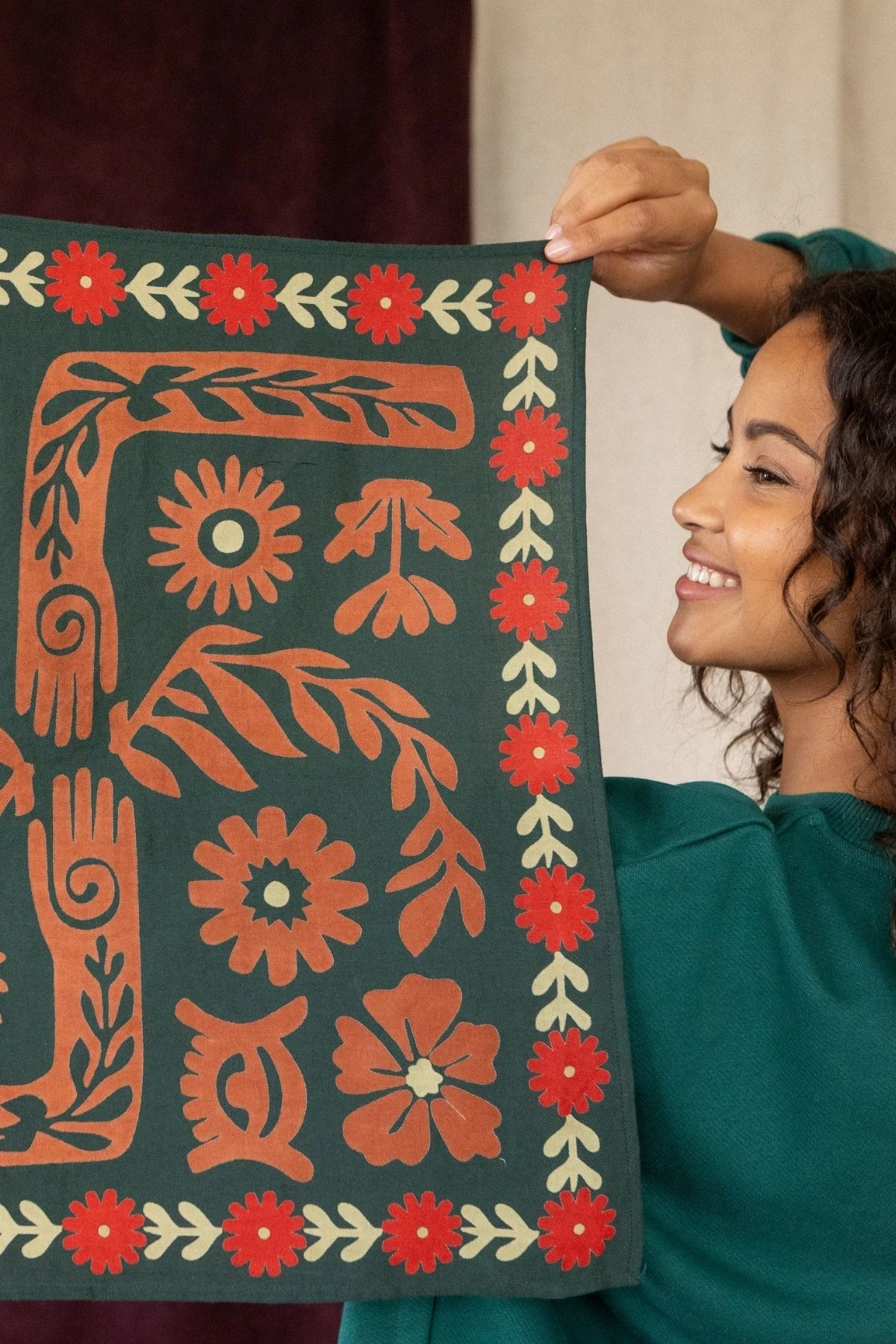 Luce la bandana de algodón verde Manika RITA, adornada con un delicado estampado floral que aporta frescura y personalidad a tus conjuntos.