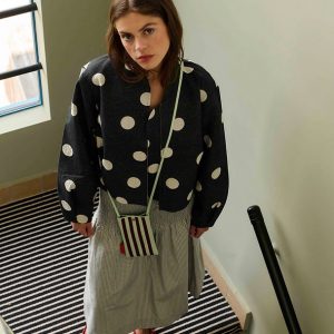 Perfecto para cuando no necesitas llevar muchas cosas. Guarda tu teléfono en esta bonita funda a rayas, ciérrala con el imán y ¡listo!