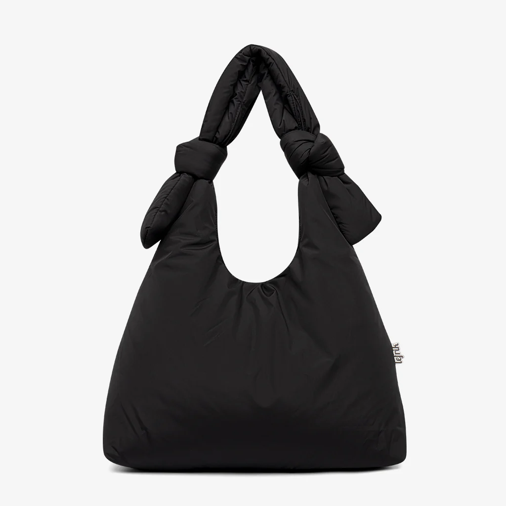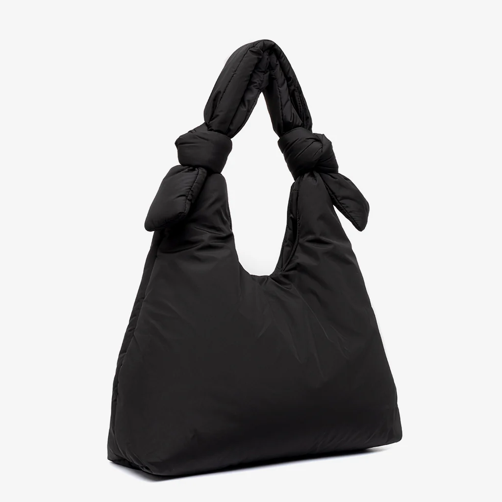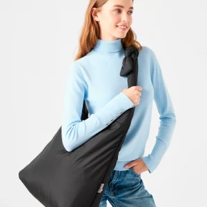 Bolso acolchado diseñado para ser utilizado tanto como bandolera como al hombro, gracias a sus lazos corredizos ajustables. Su tejido 100% hecho con poliéster reciclado y acolchado lo hacen muy ligero, suave y agradable al tacto. Cuenta con un compartimento principal de gran capacidad y un bolsillo con cremallera para objetos importantes o pequeños. Cierre con imán.