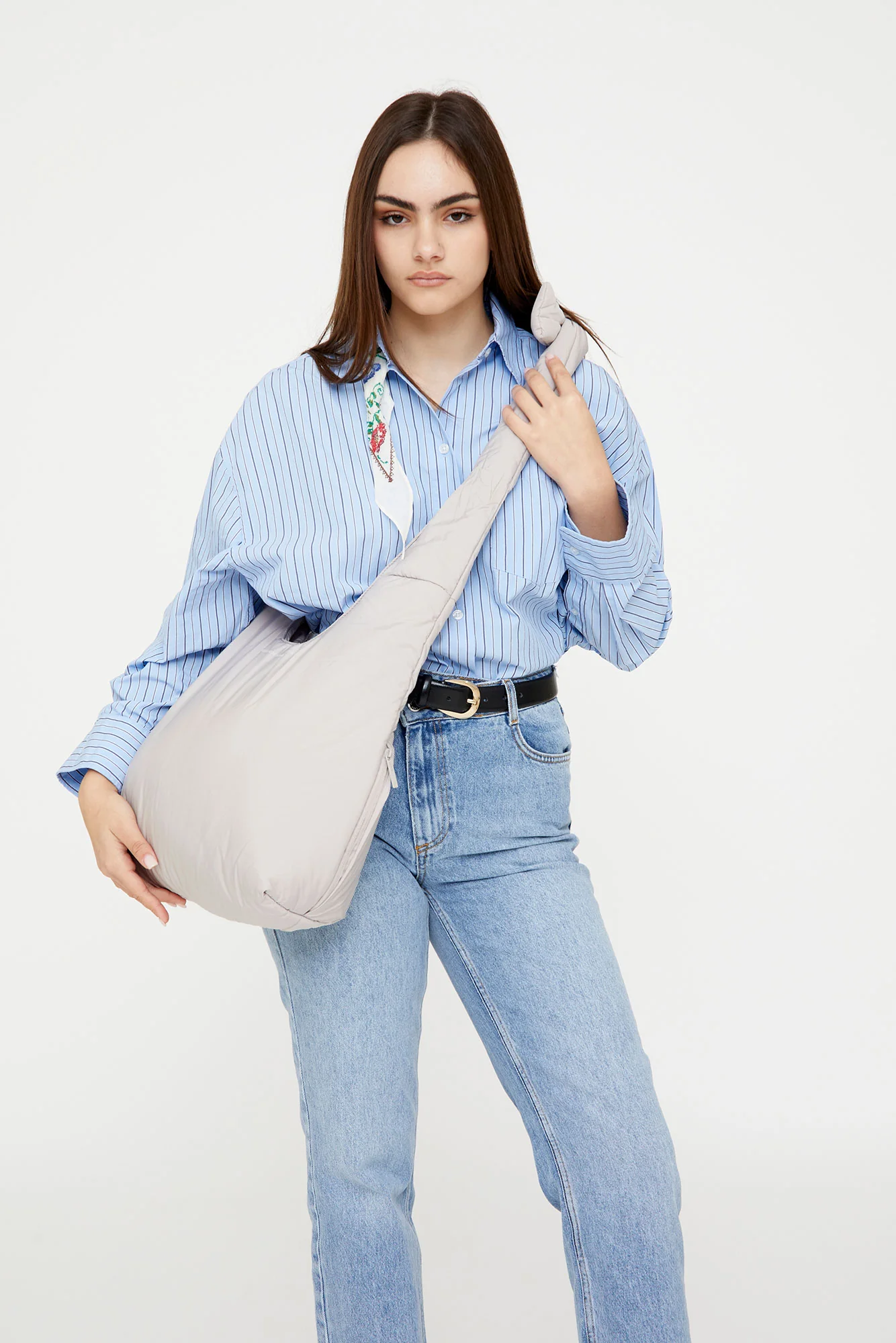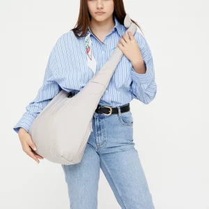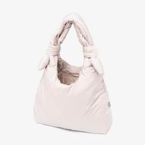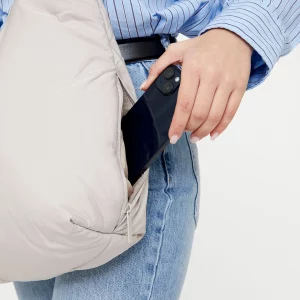 Bolso acolchado diseñado para ser utilizado tanto como bandolera como al hombro, gracias a sus lazos corredizos ajustables. Su tejido 100% hecho con poliéster reciclado y acolchado lo hacen muy ligero, suave y agradable al tacto. Cuenta con un compartimento principal de gran capacidad y un bolsillo con cremallera para objetos importantes o pequeños. Cierre con imán.