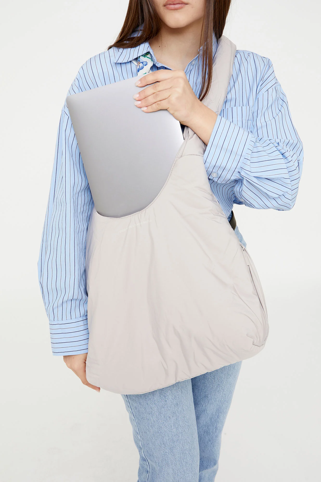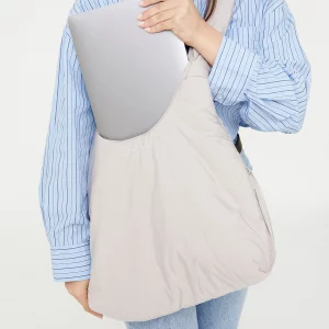 Su tejido acolchado RPET lo hace ligero, resistente al agua y vegano. Lavar en frío. Secar al aire.