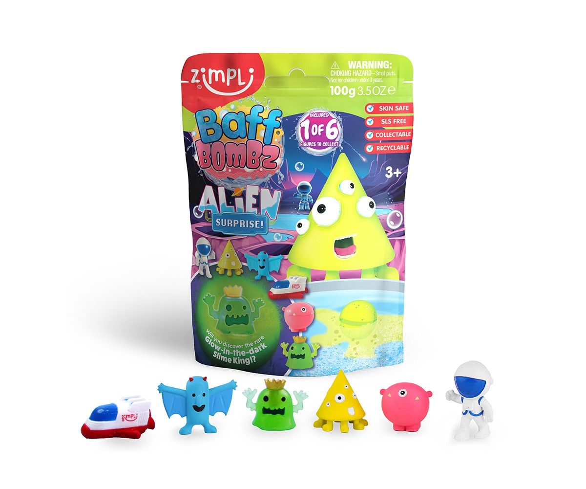 Haz que la hora del baño sea aún más emocionante con la Bomba de Baño Surprise Alien de Zimpli Kids. Una bomba efervescente que no solo llena la bañera de color y burbujas, ¡sino que también esconde una figura sorpresa en su interior!