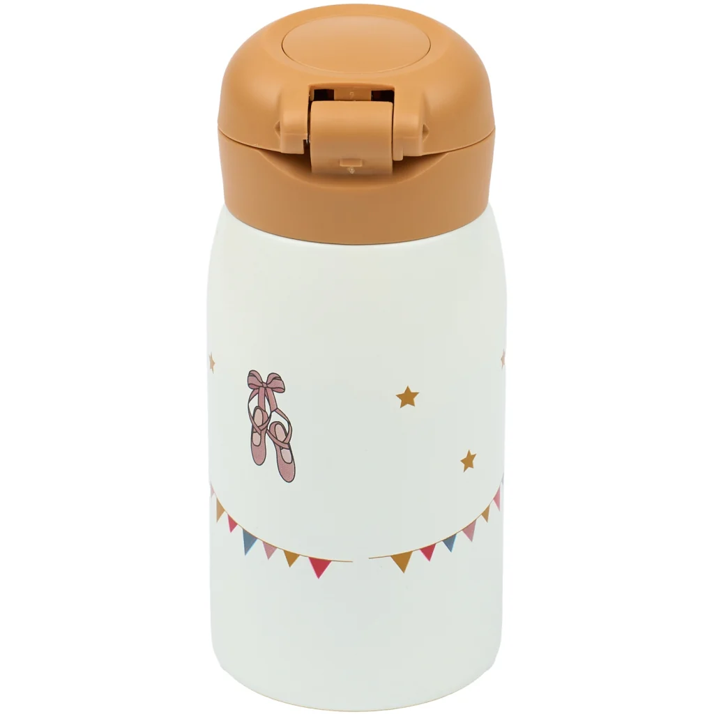 La botella tiene una capacidad de 320 ml y está fabricada en acero inoxidable 18/10 con tapa de plástico PP y sello de silicona sin BPA. Mantiene las bebidas frías durante 24 horas y calientes durante 10 horas, sin desperdiciar sabor.