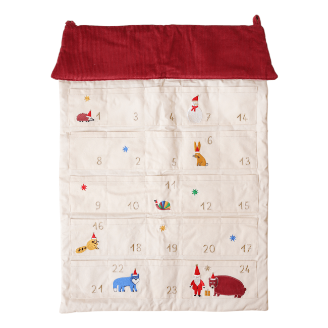 Este original calendario navideño consta de 24 pequeños bolsillos de tela, decorados con bonitos estampados inspirados en la naturaleza y los animales del bosque. Cada bolsillo puede contener una pequeña sorpresa: un dulce, una nota, una miniatura o un pequeño juguete .