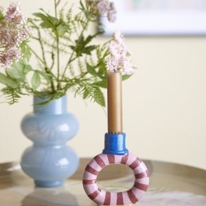 Las extravagantes rayas añaden un toque animado, mientras que el acabado pintado a mano garantiza que cada candelabro sea único.
