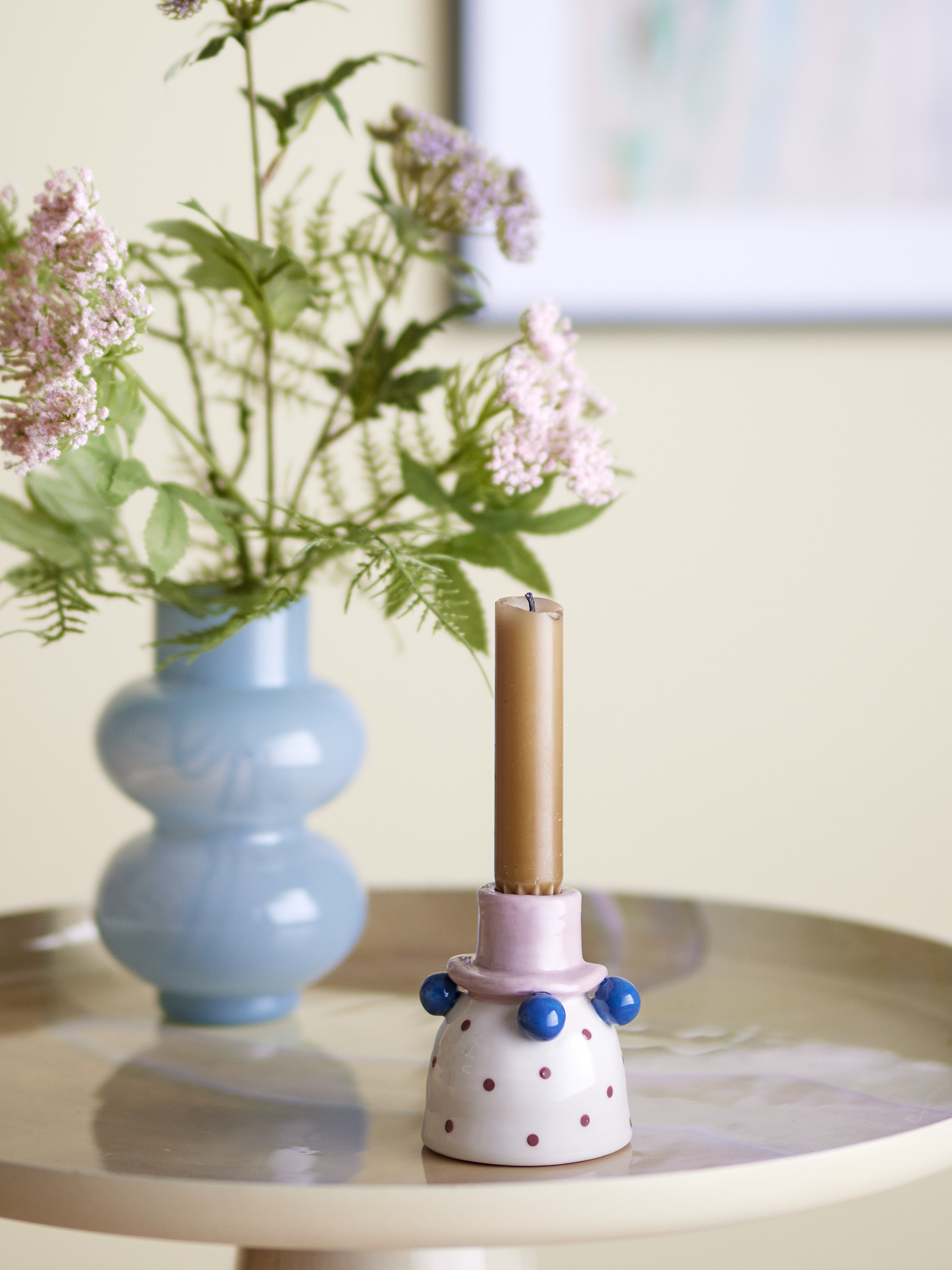 El portavelas Tacana de Bloomingville está elaborado en gres con un delicado esmalte rosa y azul.