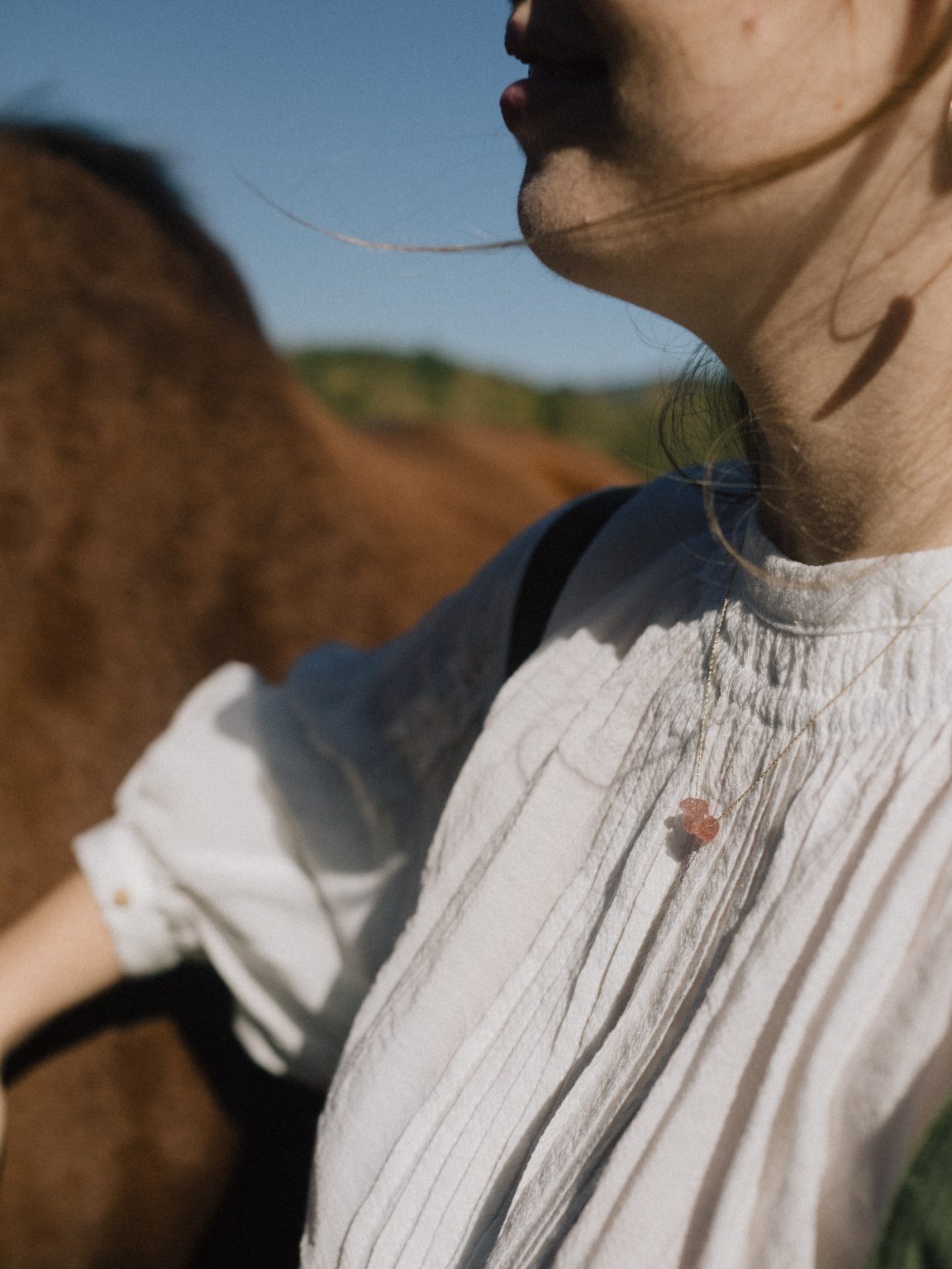 Cada colgante Tosca lleva tres pequeños fragmentos de las piedras que más nos gustan. La cadenita mide 44cm de largo, es de Latón chapado en oro 18kt y es libre de níquel y plomo como todas nuestras piezas. Cada una de las piezas de esta colección se monta a mano, una a una, en nuestro taller.