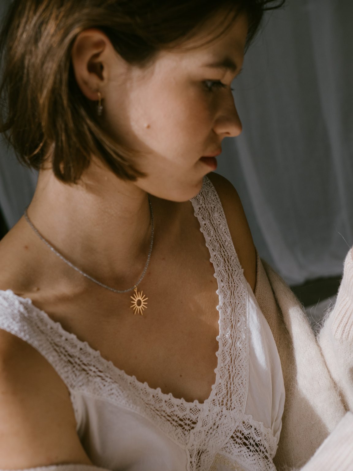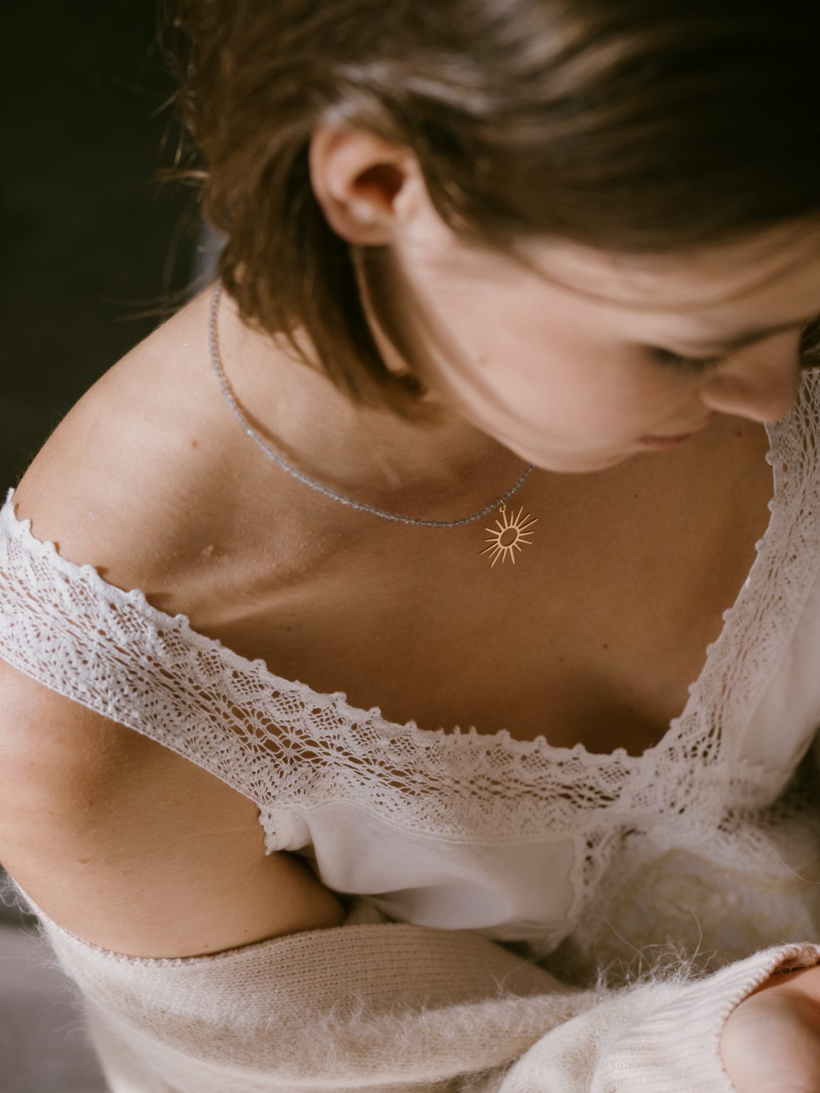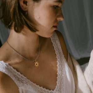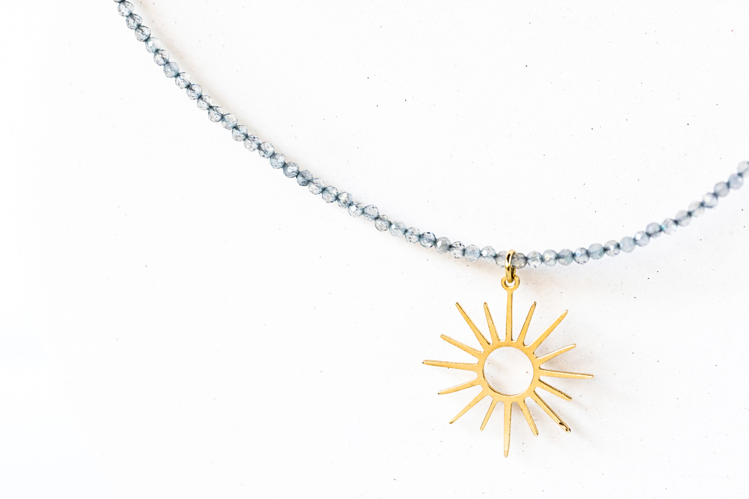 Esta diosa griega inspira nuestros collares Thea con su gran sol y el brillo de las pequeñas cuentas de piedras semipreciosas llenándote de luz.