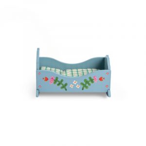 Una encantadora camita para acunar dulcemente a los muñecos de la colección Minouchkas. Fabricada en madera pintada con delicadas ilustraciones y equipada con un suave colchón a cuadros, esta cuna es el escenario perfecto para las historias de juego y los rituales de sueño.