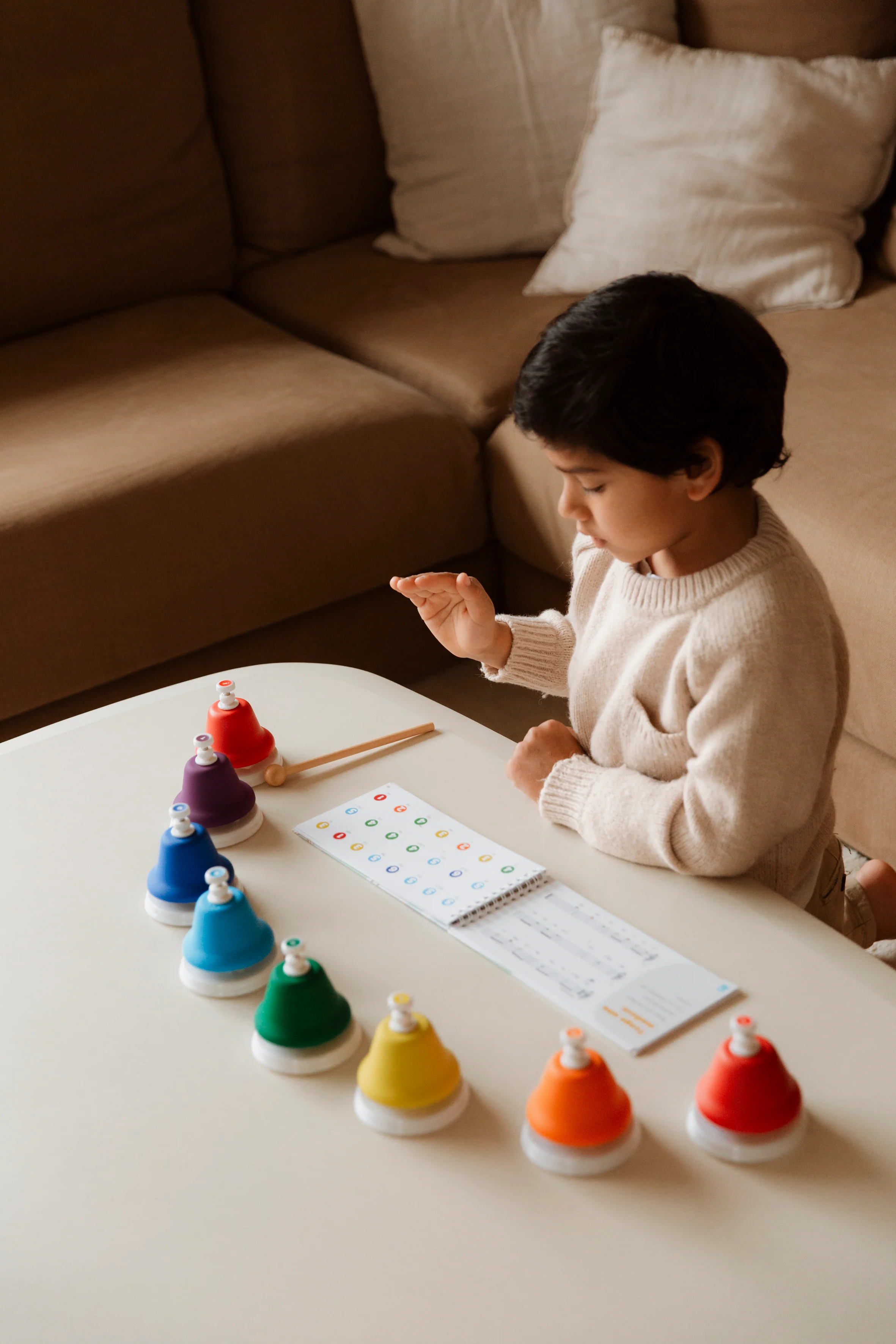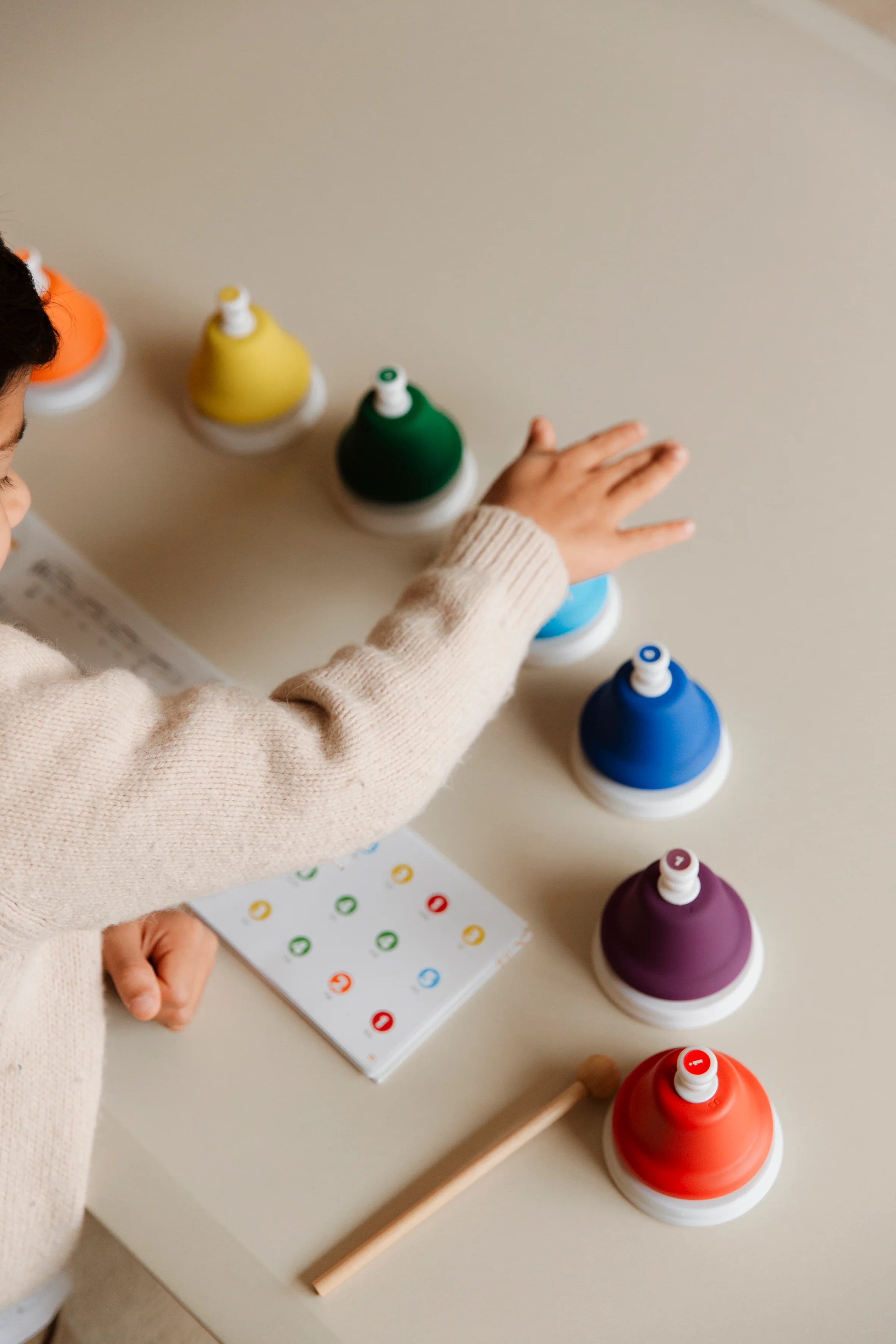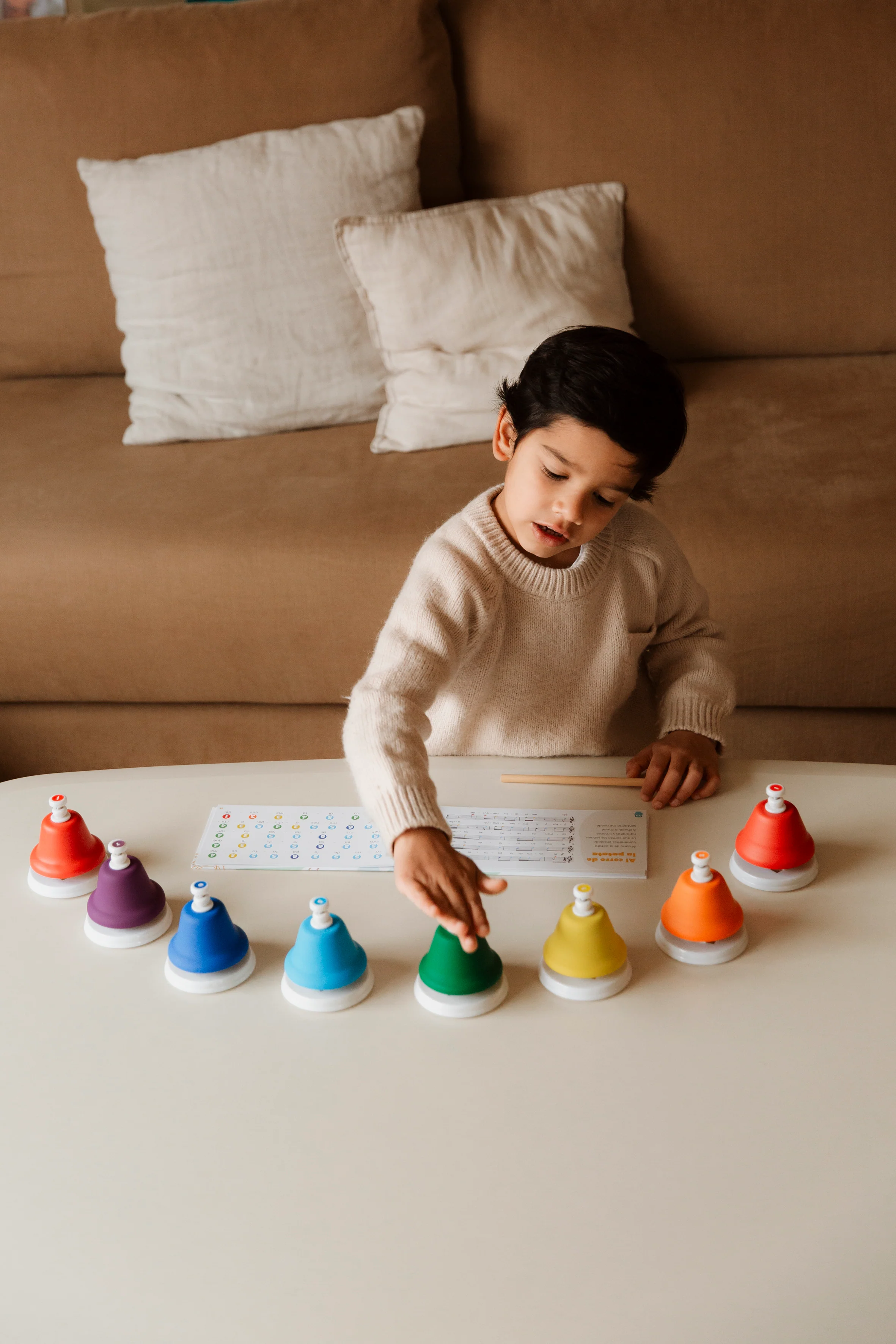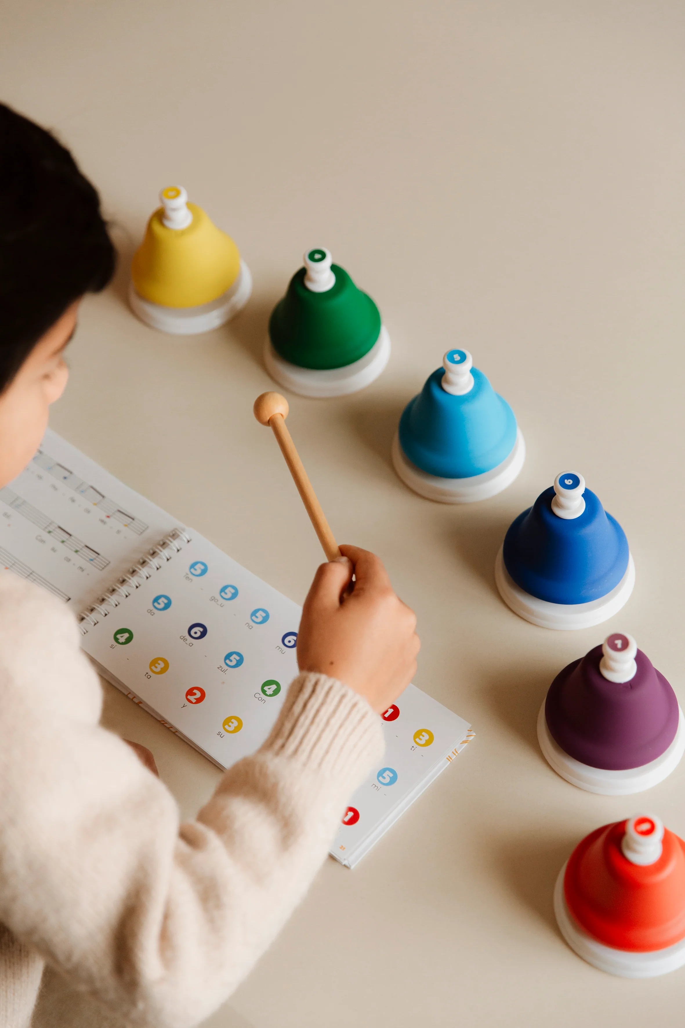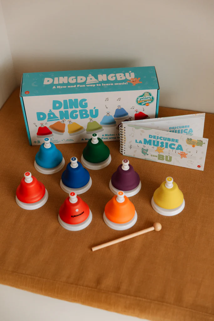 Las campanas DingdangBú son una forma maravillosa de iniciar a los pequeños en la música. Con solo presionarlas, ¡cada campana toca una nota diatónica perfectamente afinada!