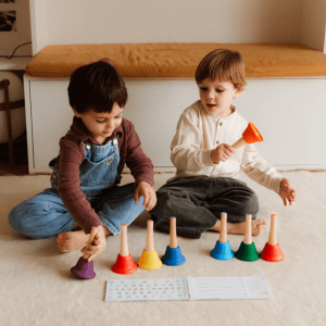 Las campanas DingdangBú son ideales para que los niños den sus primeros pasos en la música de manera natural y divertida. Al agitarlas, cada campana emite una nota diatónica afinada, lo que permite experimentar con sonidos sin esfuerzo.