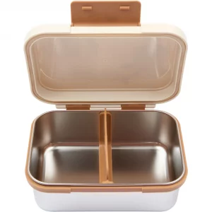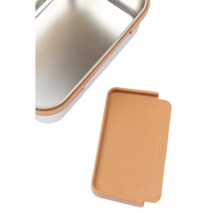 La fiambrera de Fabelab está fabricada en acero inoxidable con tapa de plástico PP. En su interior, un separador extraíble facilita la organización de comidas y tentempiés.