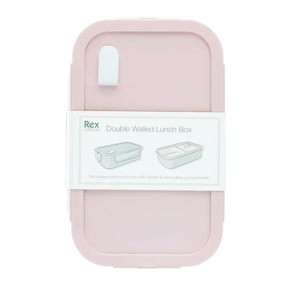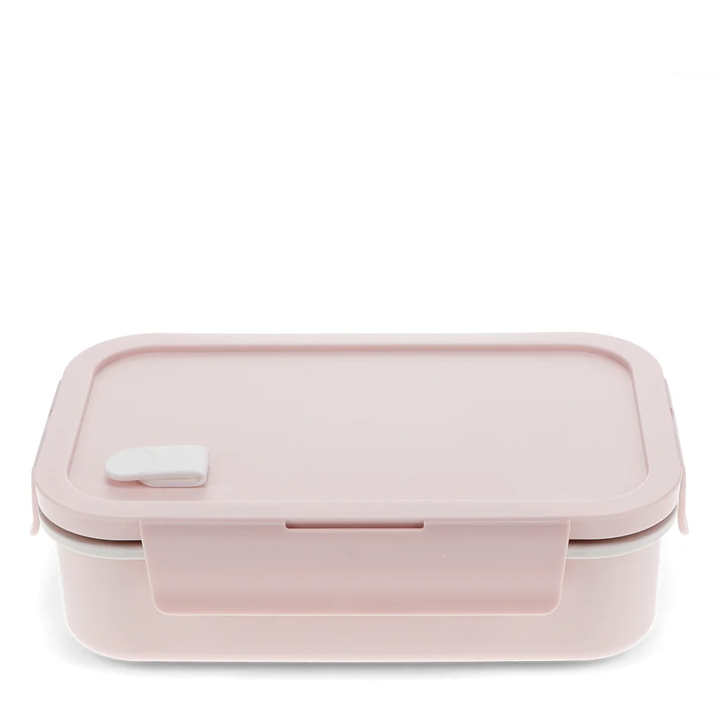 Fiambrera inteligente de doble pared en color rosa pálido, repleta de funciones útiles. Ideal para llevar almuerzos fríos o calientes al trabajo, a la escuela o de viaje.