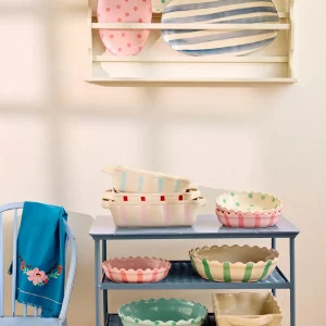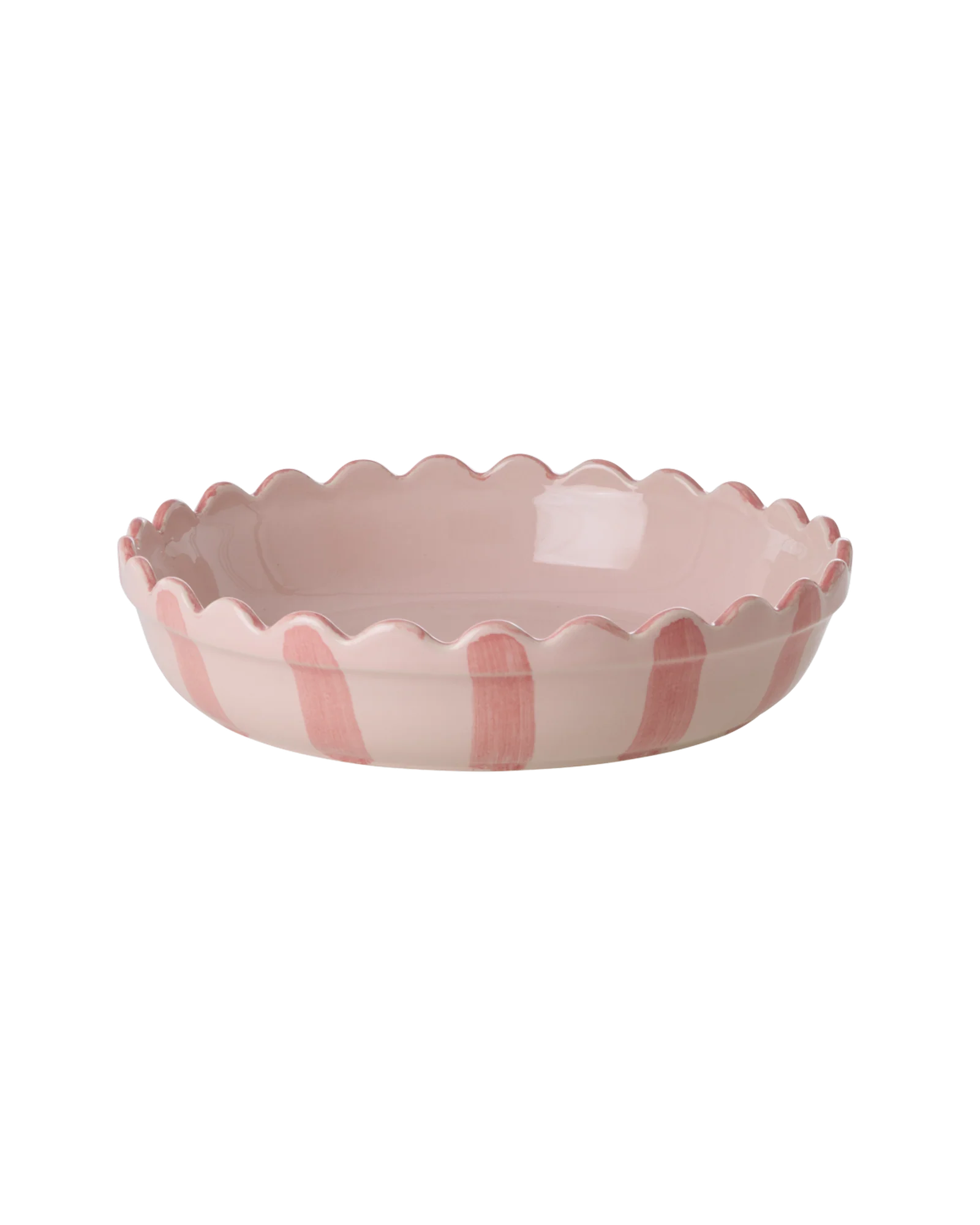 Preciosa fuente de horno de cerámica pequeña y redonda … el precioso color rosa y las rayas de color coral están pintados a mano por talentosos artesanos – ¡lo que significa que todos las fuentes son únicas! Al comprar cerámica, hay que saber que con el tiempo se pueden formar pequeñas grietas, ya que el material está «vivo» y siempre estará «trabajando».