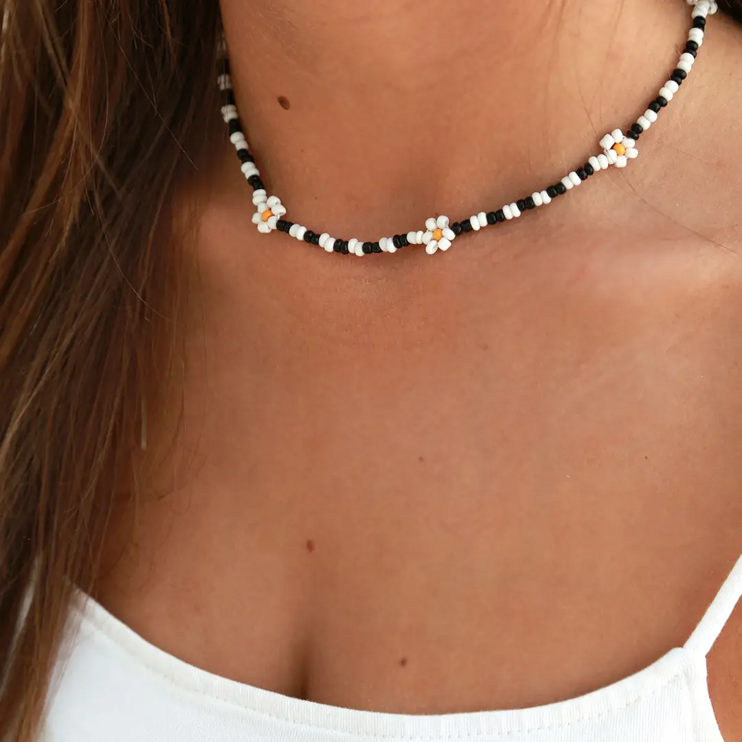 Sé el primero en valorar “Gargantilla blanca y negra con margaritas”