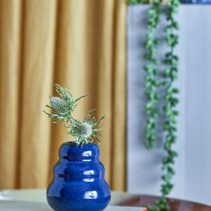 El jarrón Faramir de Bloomingville está esmaltado en un color azul intenso, lo que le da un aura relajante que agregará un toque de profundidad a cualquier decoración.
