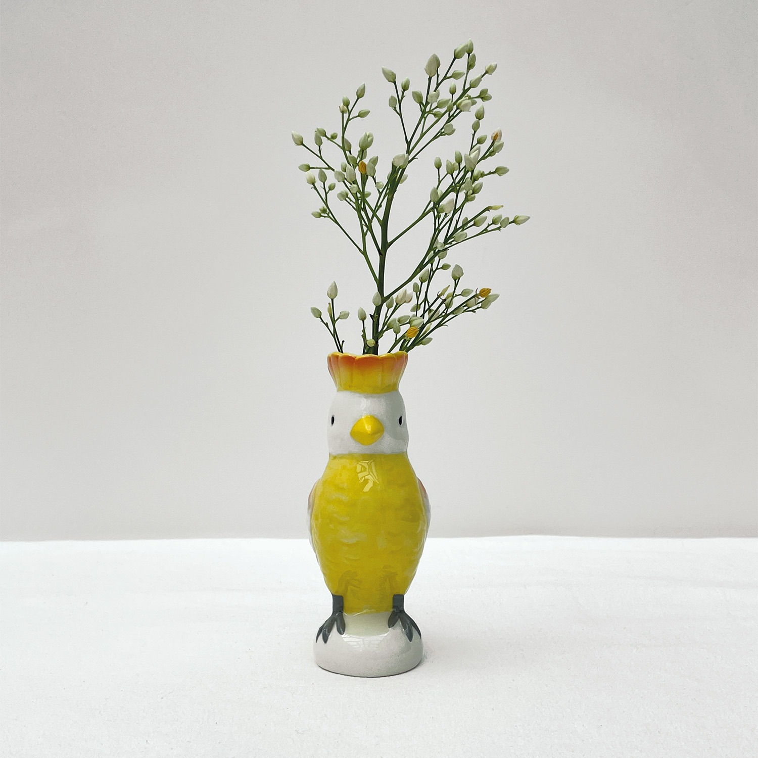 Un detalle encantador que aporta color y alegría a cualquier rincón. Este jarrón de porcelana con forma de loro destaca por su diseño original y su suave tono rosa, perfecto para dar un toque especial a tu decoración. Ideal para flores pequeñas, ramitas secas o simplemente como pieza decorativa por sí sola.