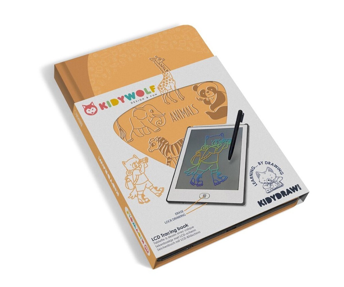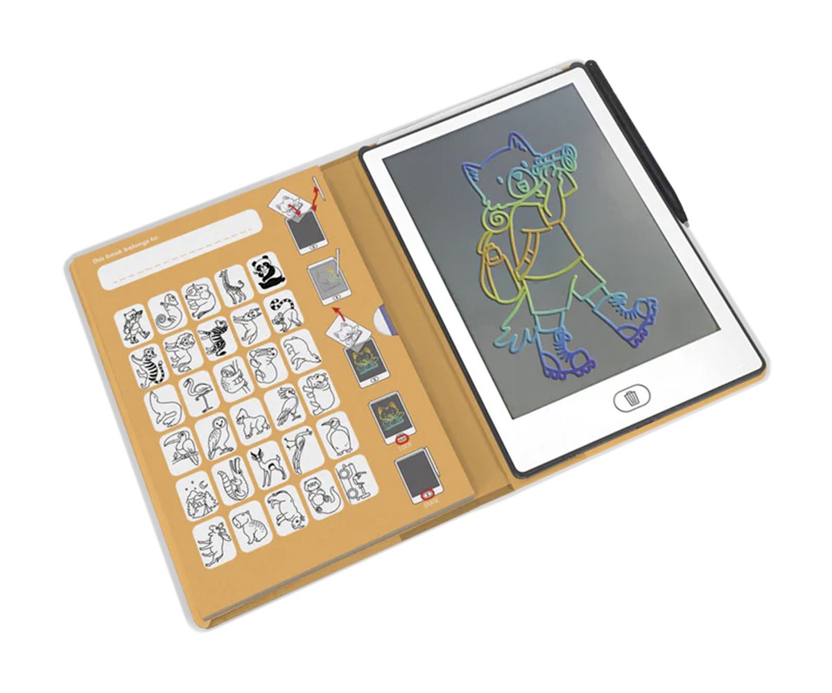 Un original libro de dibujo con pantalla LCD que ofrece 30 ilustraciones de calco con la temática de diferentes animales.