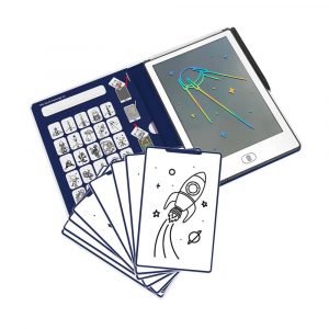 Un original libro de dibujo con pantalla LCD que ofrece 30 ilustraciones de calco inspiradas en la galaxia y el espacio exterior. Ideal para estimular la creatividad y el aprendizaje, permitiendo crear dibujos en cualquier lugar.
