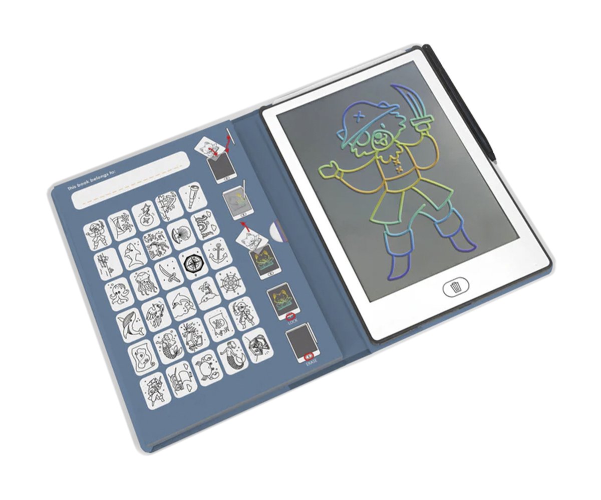 Es un original libro de dibujo con pantalla LCD que ofrece 30 ilustraciones de calco con la temática de los piratas. Ideal para estimular la creatividad y el aprendizaje, permitiendo crear dibujos en cualquier lugar.