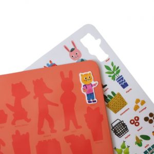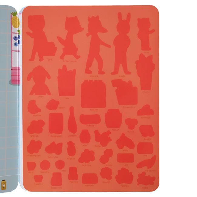 Los niños pequeños también pueden divertirse pegando, despegando y creando. Fáciles de agarrar y manipular, las pegatinas de silicona reposicionables encantarán a sus pequeñas manos. A partir de los 3 años, sus hijos podrán descubrir el tema «Mi Pequeño Mercado» y hacer sus compras con las pegatinas.