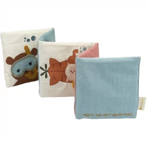 El libro de tela “Mar” de Fabelab invita a los peques a vivir una divertida aventura submarina junto a Oso y Conejito. A lo largo de sus páginas, descubrirán caballitos de mar, tortugas y otros amigos del océano mientras exploran las mágicas profundidades.