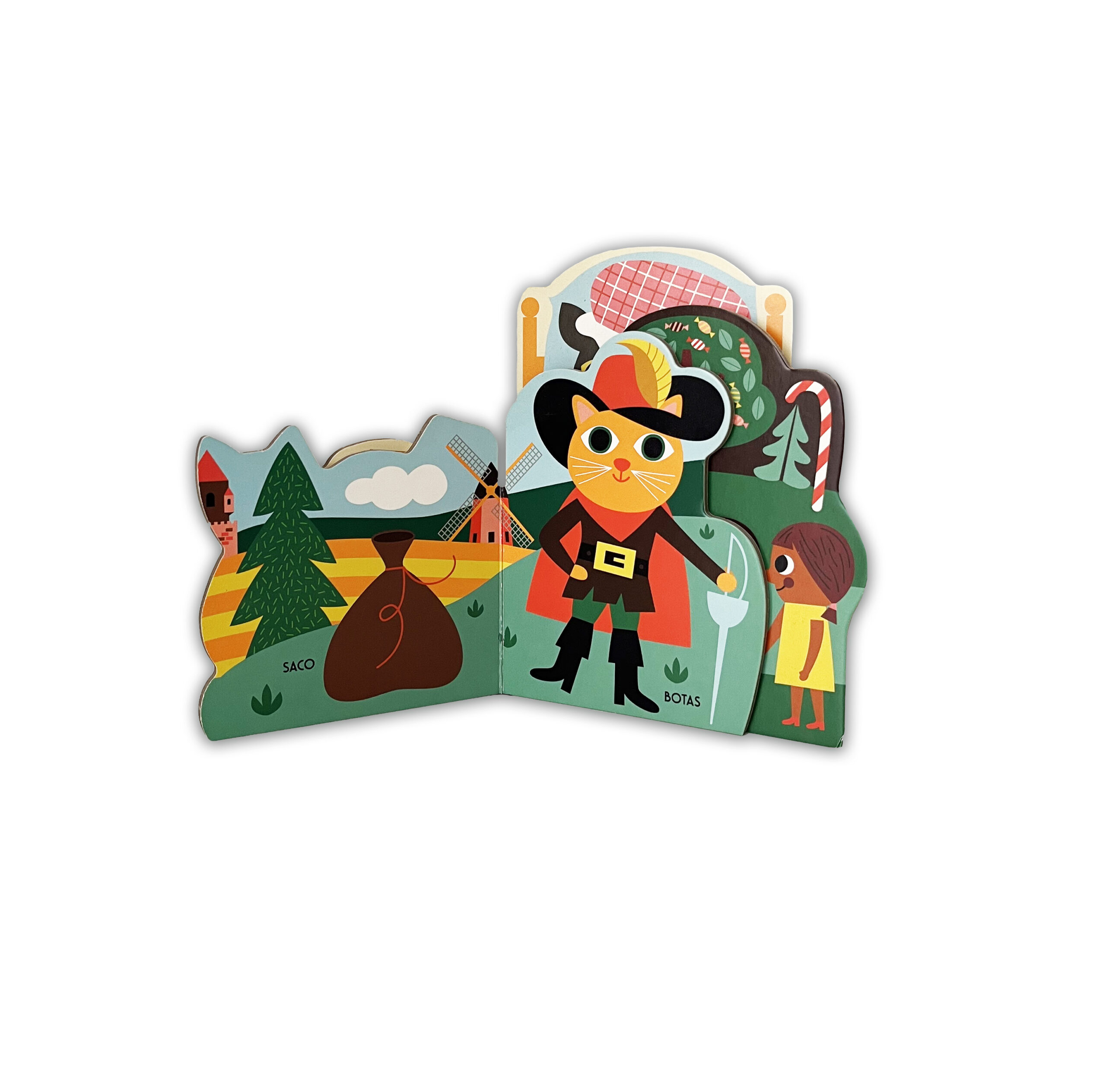 CUENTOS permite a los bebés dar el primer paso para iniciarse en el fantástico mundo de los cuentos ilustrados, como Los tres cerditos, El gato con botas, Caperucita Roja y muchos más.