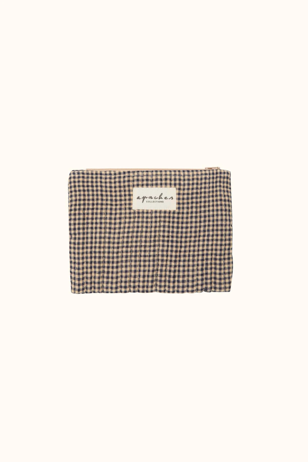 Con su pequeño estampado de cuadros, el mini neceser MANA Small Checkmate ofrece un look atemporal y gráfico. Práctico y fácil de llevar, permite guardar documentos o joyas con estilo y sencillez.