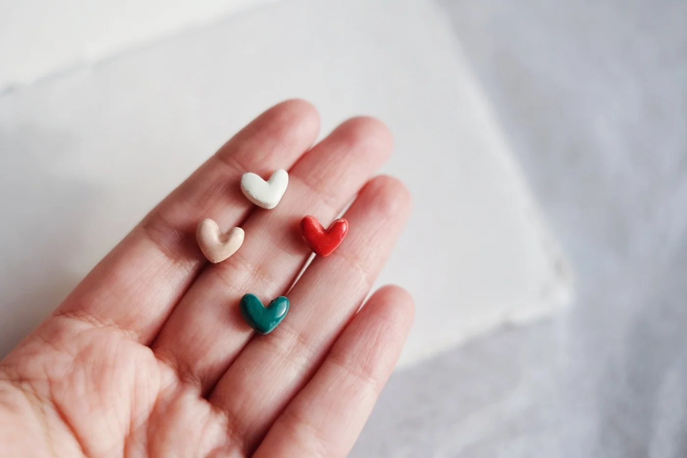 Corazones en 4 tonalidades: Rojos, Rositas, Blancos y Verde Esmeralda.