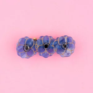Un bonito pasador de flores adornado con lindas anémonas de color azul océano con detalles dorados.