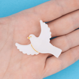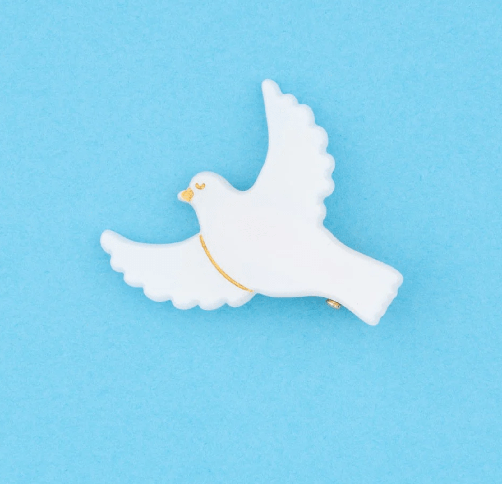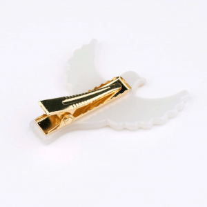 Una paloma en vuelo como una horquilla poética: un bonito accesorio blanco perlado con detalles dorados para sujetar tu melena o para darle un toque final encantador a tu moño.