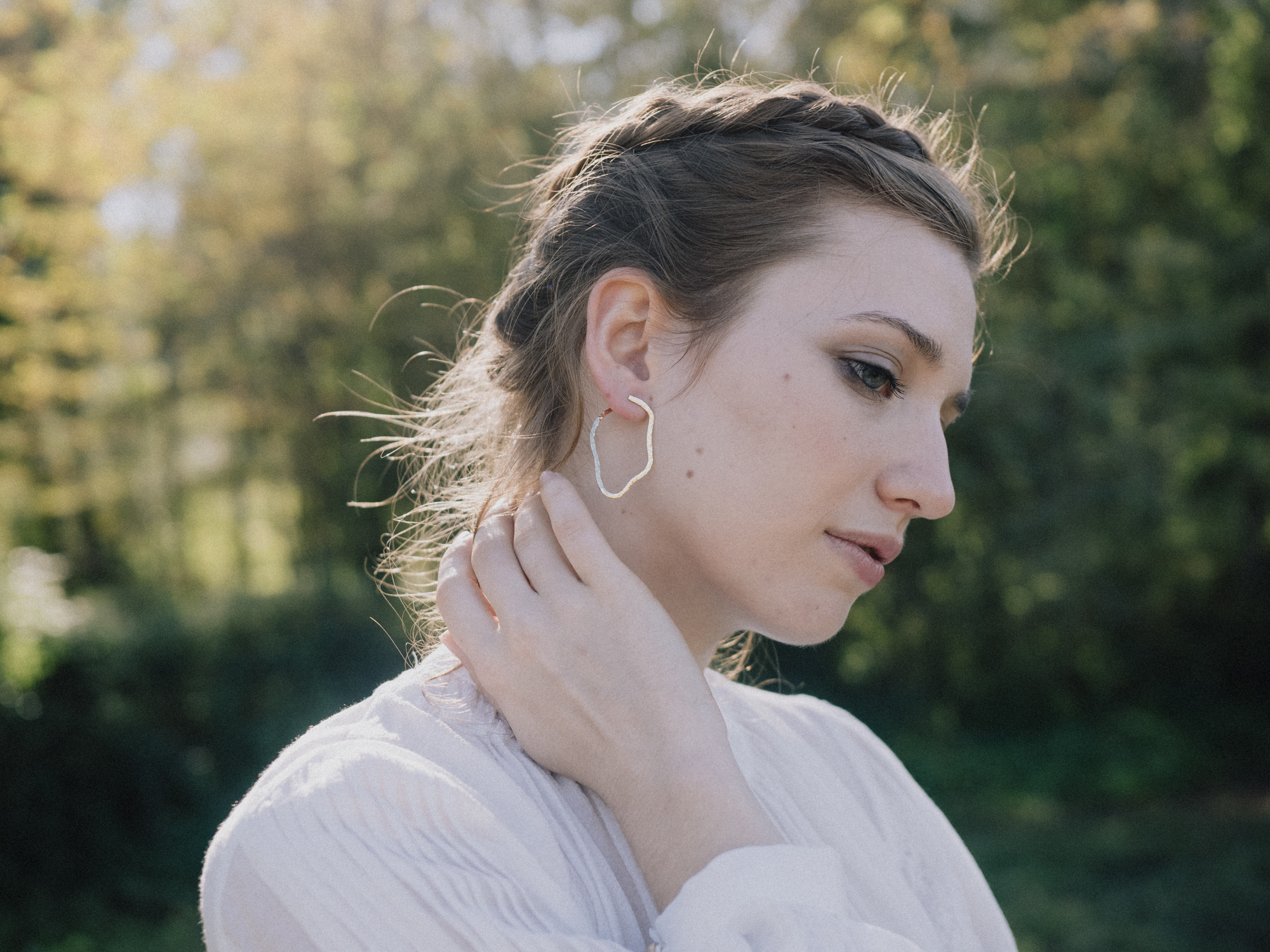 Nuestros pendientes Camino son una pieza especial. Cada uno de ellos se realiza a mano en nuestro taller dándoles forma y textura hasta conseguir esta forma sinuosa que crea un efecto muy especial en el que parece que los extremos se unan en el camino que sale y vuelve a ti.