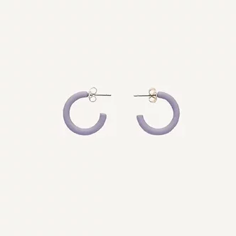 Unos pendientes de aro en un suave material y color Lila claro con el pasador de plata. Un accesorio para cada día o tus ocasiones especiales que dará un rayo de sol en tu rostro.
