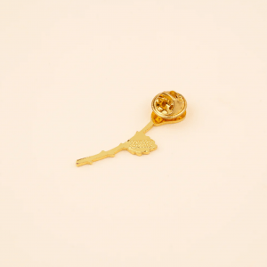 Aquí tienes a nuestra amiga, la rosa, en un broche ultraelegante, con detalles dorados y colores vibrantes.