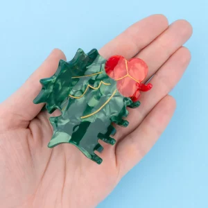 ¡Una hermosa pinza para el cabello kitsch iridiscente en forma de rama de acebo, para peinados deslumbrantes sin dejar de ser estacional!
