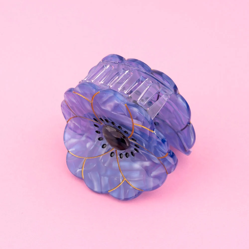 ¿No tienes inspiración para el peinado de hoy? Optamos por esta bonita pinza para el pelo Anemone de color azul y su material con efecto arrugado que le confiere magníficos reflejos. Y listo, ¡un moño precioso en poco tiempo!