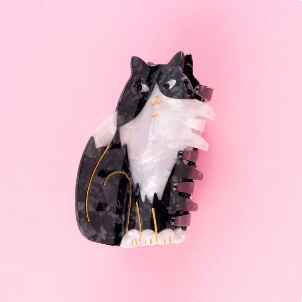 Una linda pinza para el pelo de gato con forma de gato regordete.