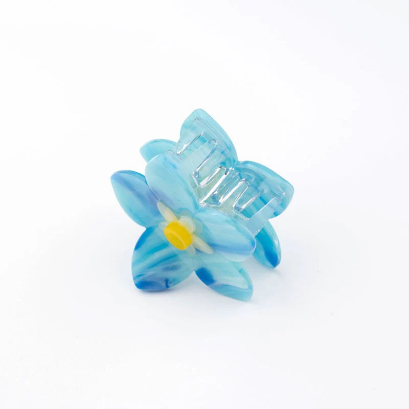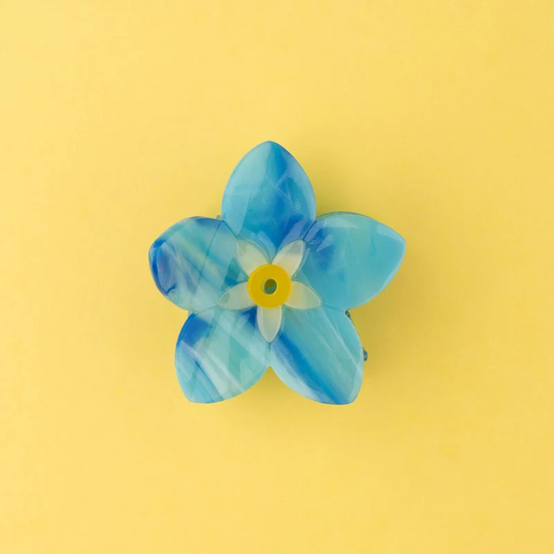 Una sublime pinza para el pelo en forma de nomeolvides con sus bonitos pétalos de color azul, su corazón amarillo pálido y el pequeño agujero en el medio como en la vida real (¡sí, sí! Mira más de cerca el próximo olvido -yo-no te encuentras!).
