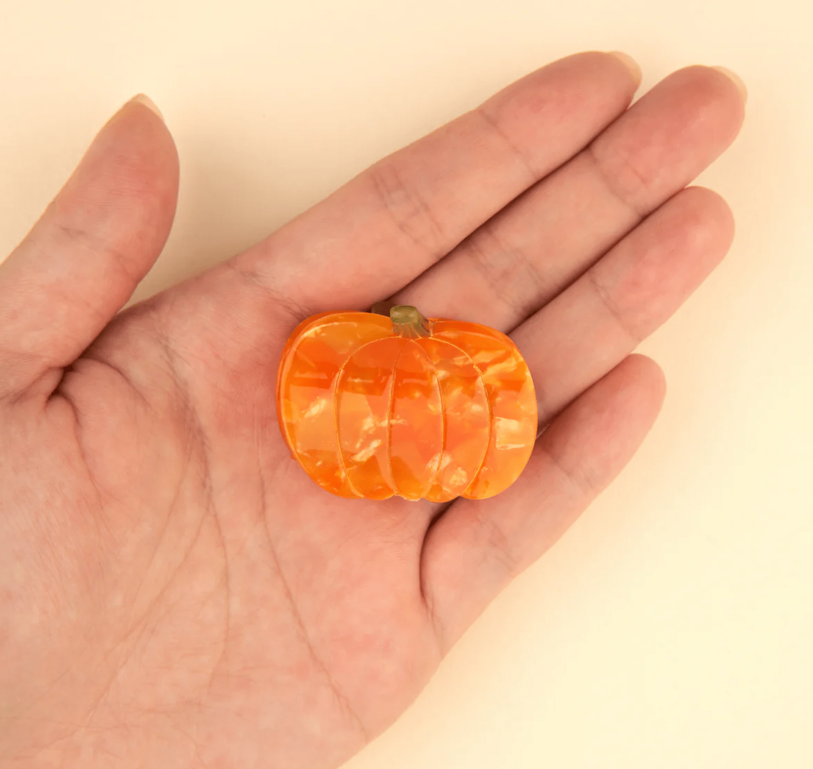 ¡Dile hola a la pinza pequeña de calabaza para el cabello! Al igual que su hermana mayor, celebra el otoño de la manera más encantadora y sutil.