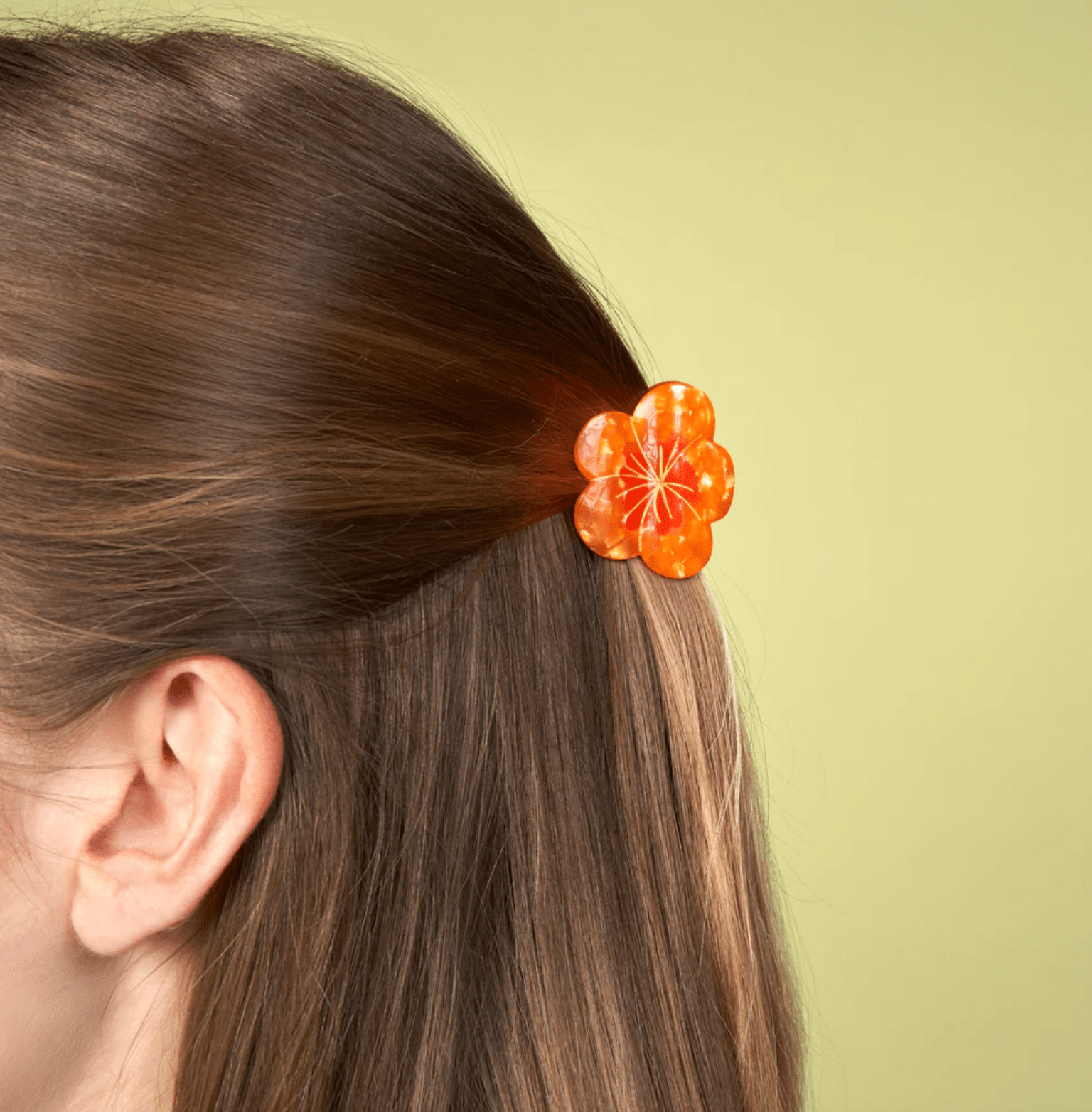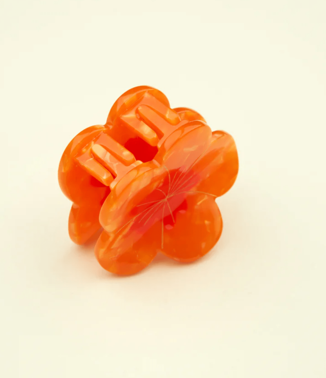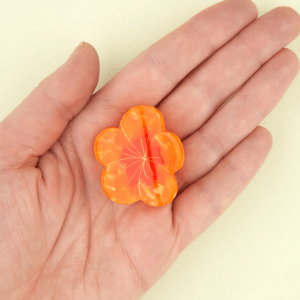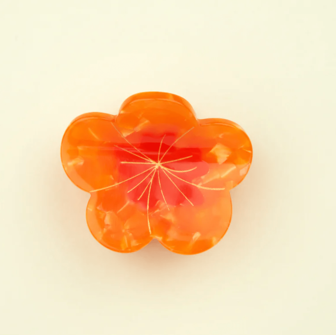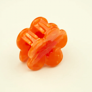 Nos encanta esta mini flor naranja con centro rojo que cabe fácilmente en cualquier bolso y le da un toque de estilo a cualquier peinado.