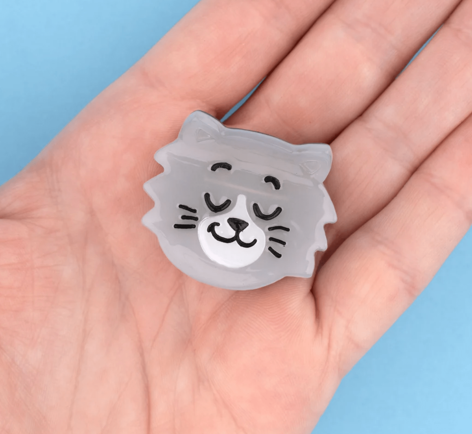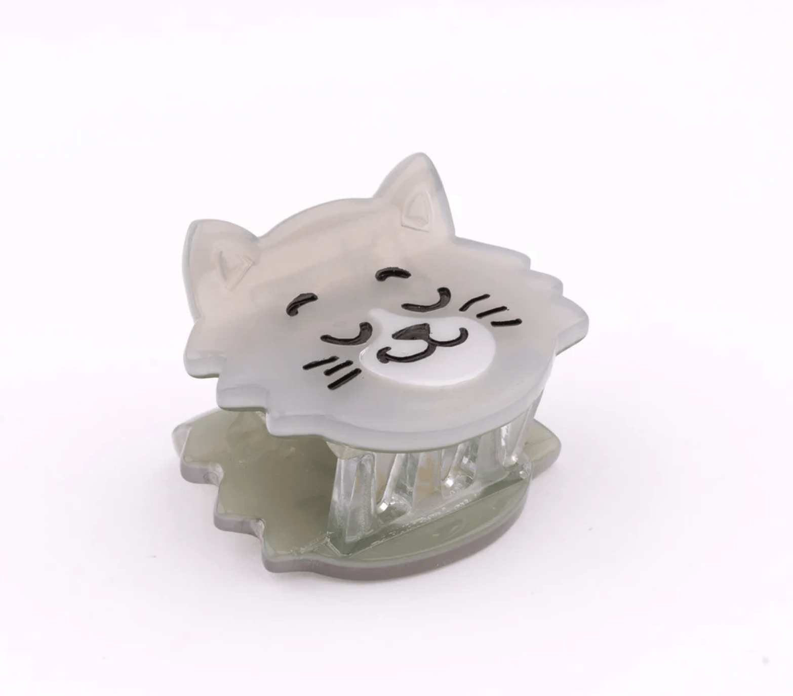 ¡Una adorable carita de gato gris con forma de mini garra para el pelo!