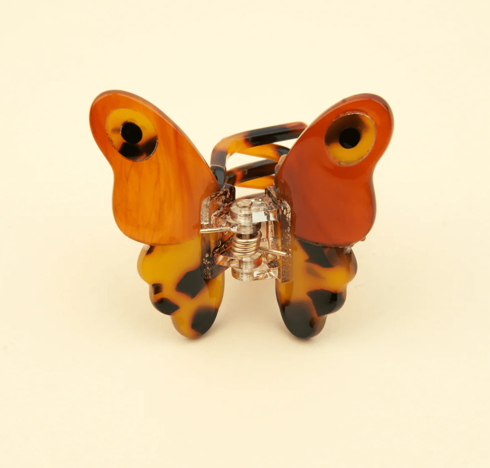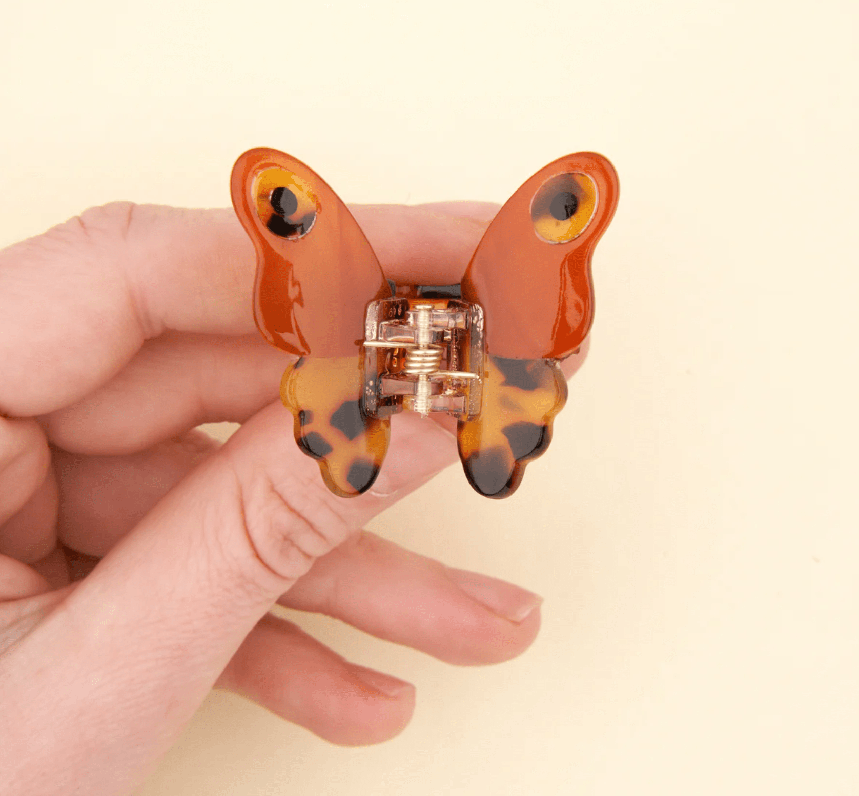 Una original mini pinza para el pelo con forma de una preciosa polilla marrón con lunares que luce genial en moños y semirecogidos.
