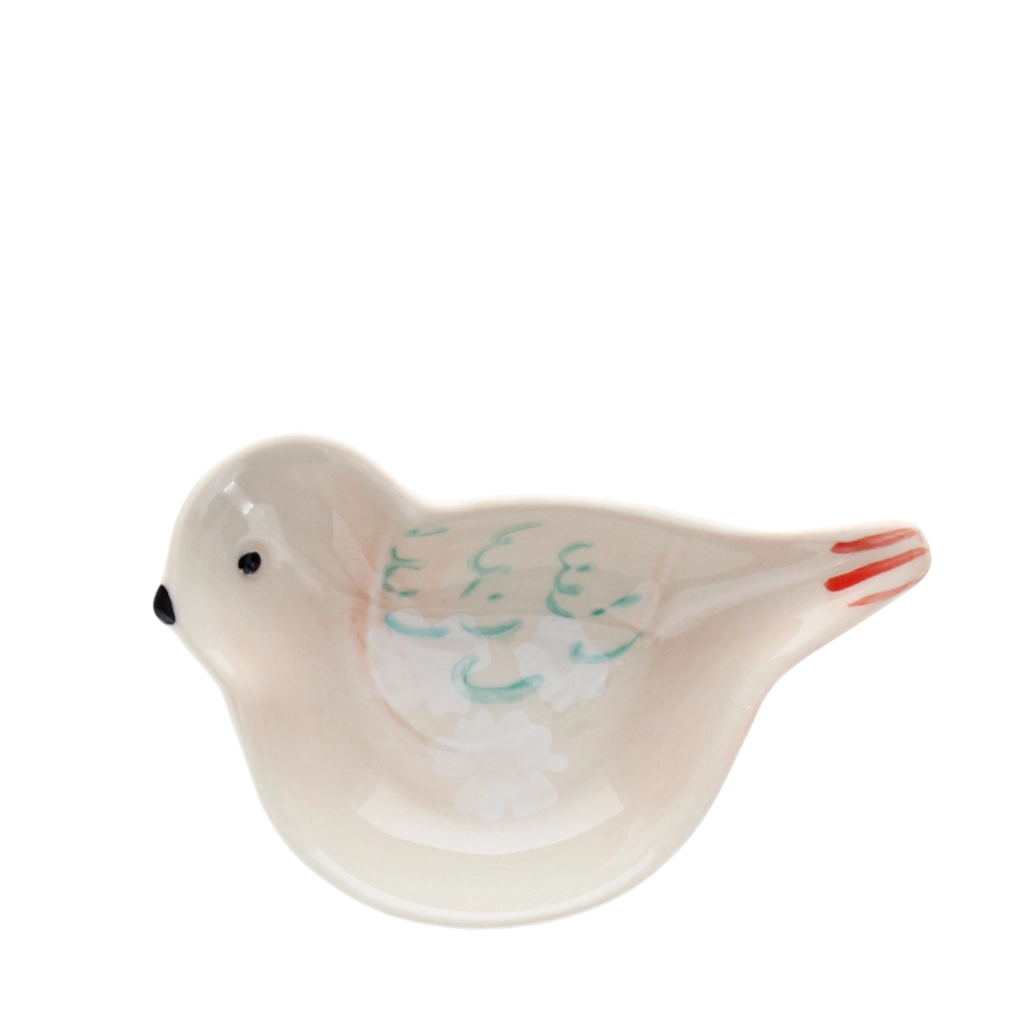 Añade un toque de estilo vintage a tu hogar con este plato de cerámica con forma de pájaro, con detalles pintados a mano.