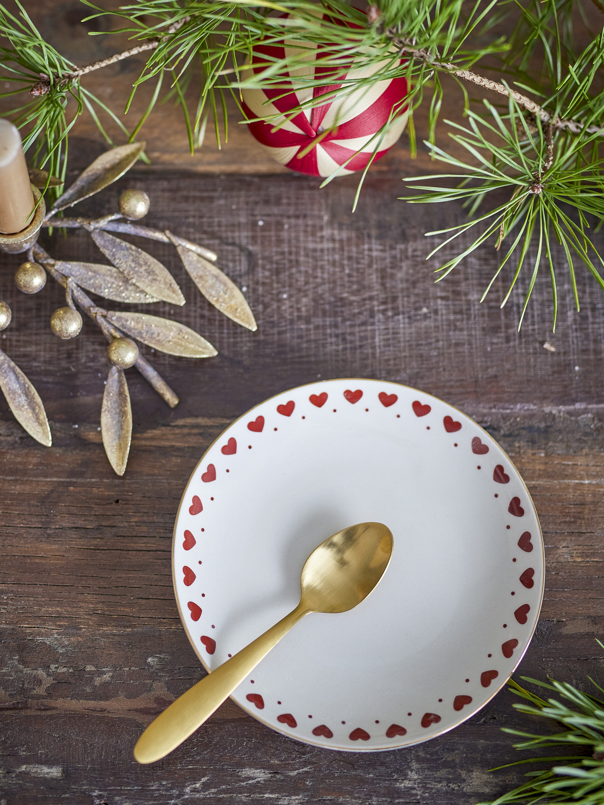 El Plato Jolly de Bloomingville es un elegante plato de postre con un estampado de corazones. Su borde dorado pintado a mano añade un toque encantador a la mesa y garantiza que cada plato sea único. Perfecto tanto para el día a día como para ocasiones festivas, este plato crea un ambiente cálido y acogedor.