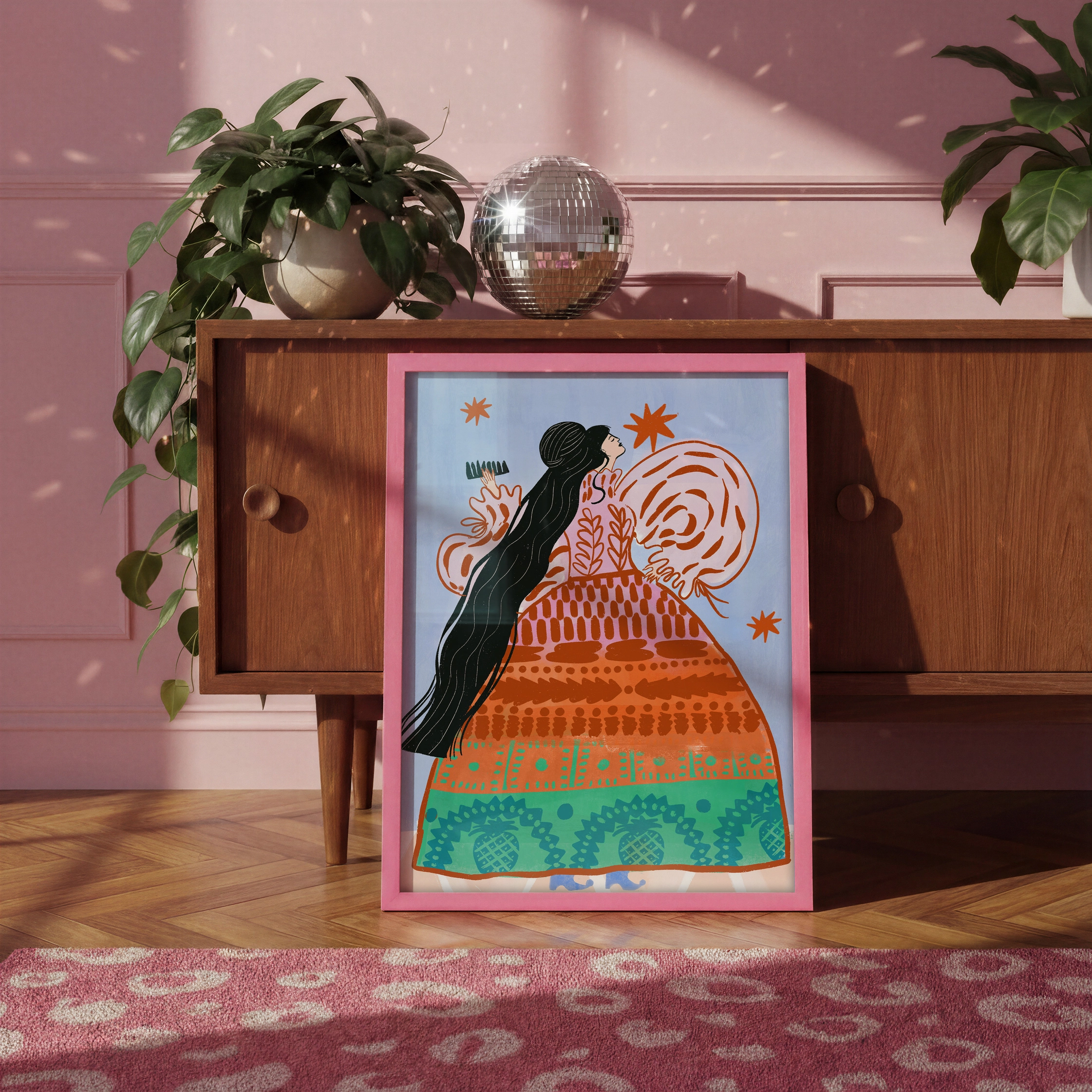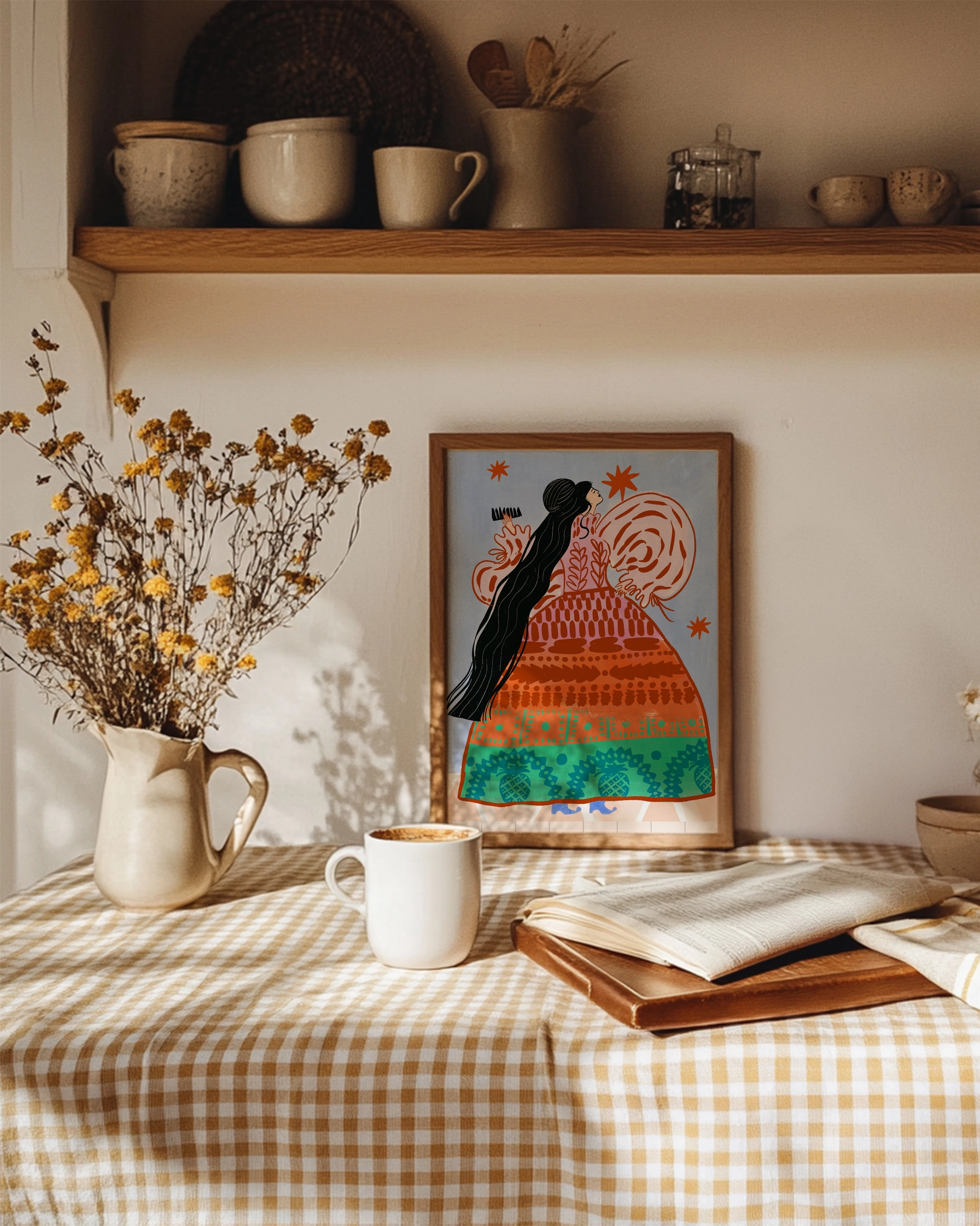 A Carole Hillman le encantó crear esta ilustración con sus colores vibrantes y motivos de inspiración folclórica. Crean una atmósfera suave, poética y atemporal.