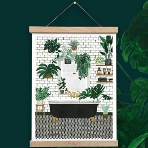 Dale tranquilidad y frescura a tu espacio con Bathroom . Este póster presenta un baño blanco y sereno, lleno de exuberantes plantas verdes, una combinación perfecta de simplicidad y relajación.