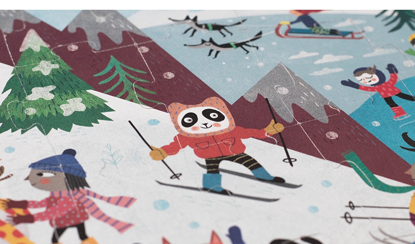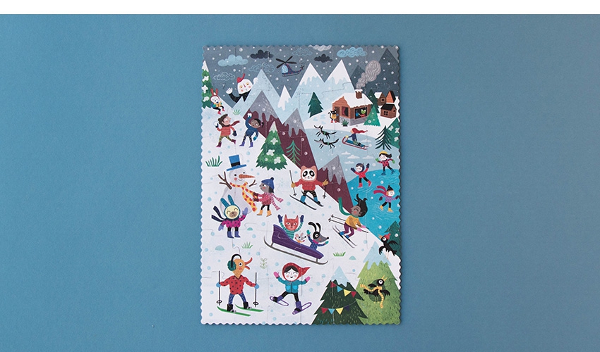 Un genial puzzle reversible con miles de ideas para disfrutar en la montaña, tanto en invierno como en verano. De Londji